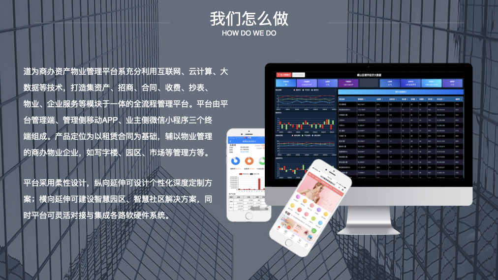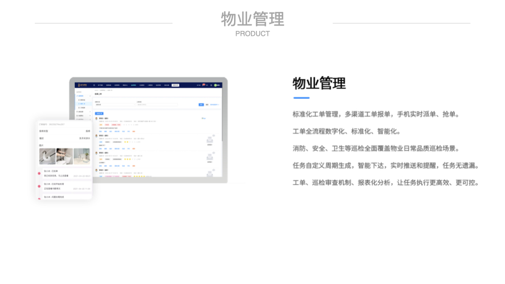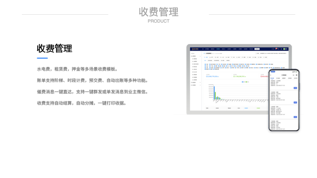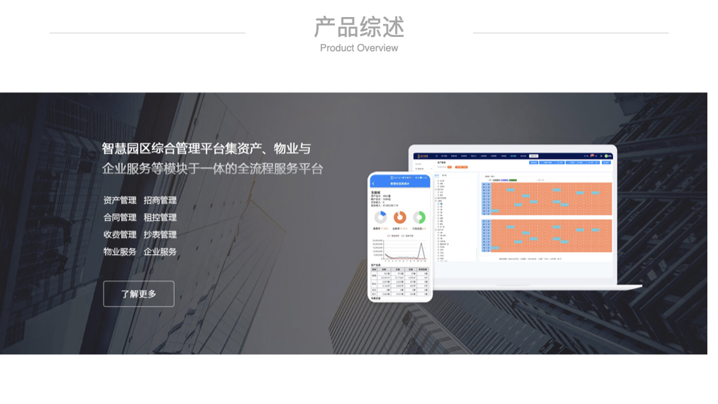 打造集資産、招商、合同、收費(fèi)、抄表、物(wù)業(yè ​¶)、智慧物(wù)聯、企業(yè)服務等模塊于一(yī)體(tǐ)的(de)全流程管理(lǐ)平♠σ 台